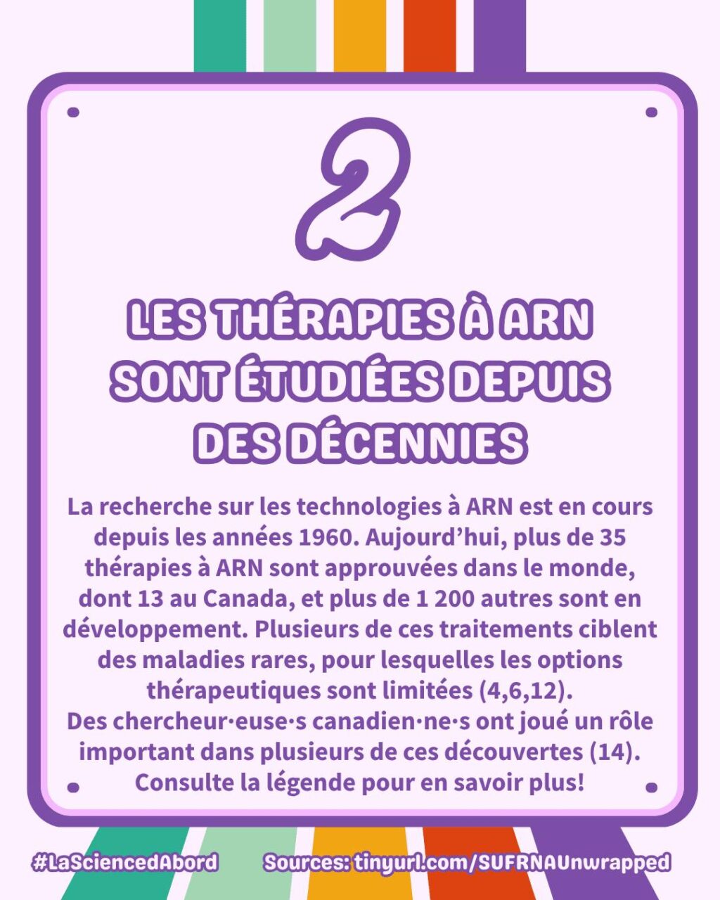 Aujourd’hui, les thérapies à base d’ARN sont explorées pour traiter des maladies rares, le cancer, les maladies infectieuses et bien d’autres.