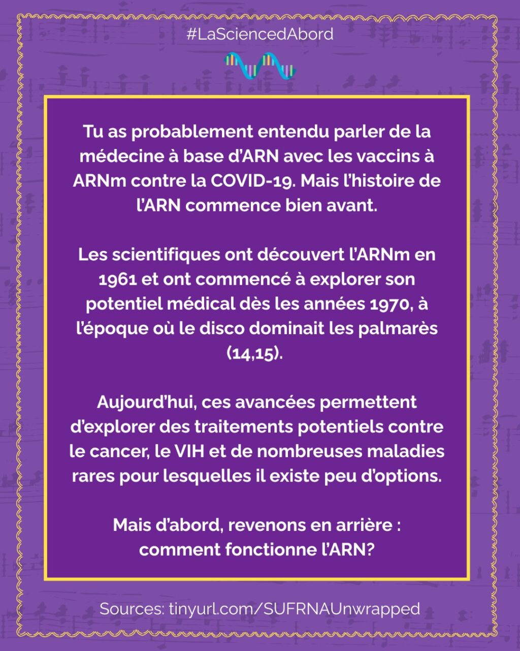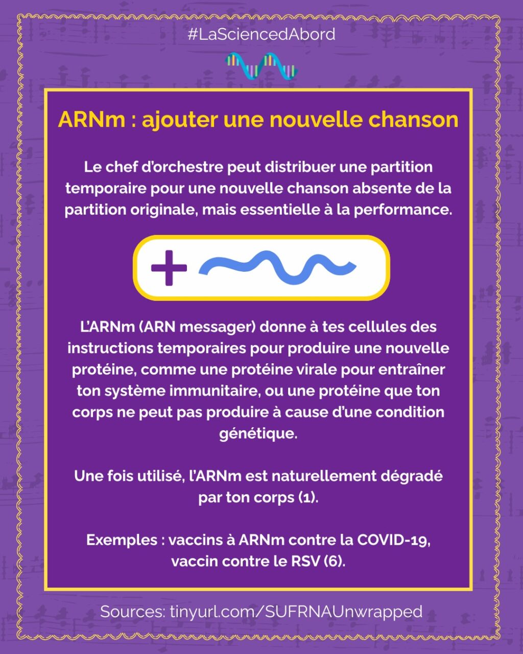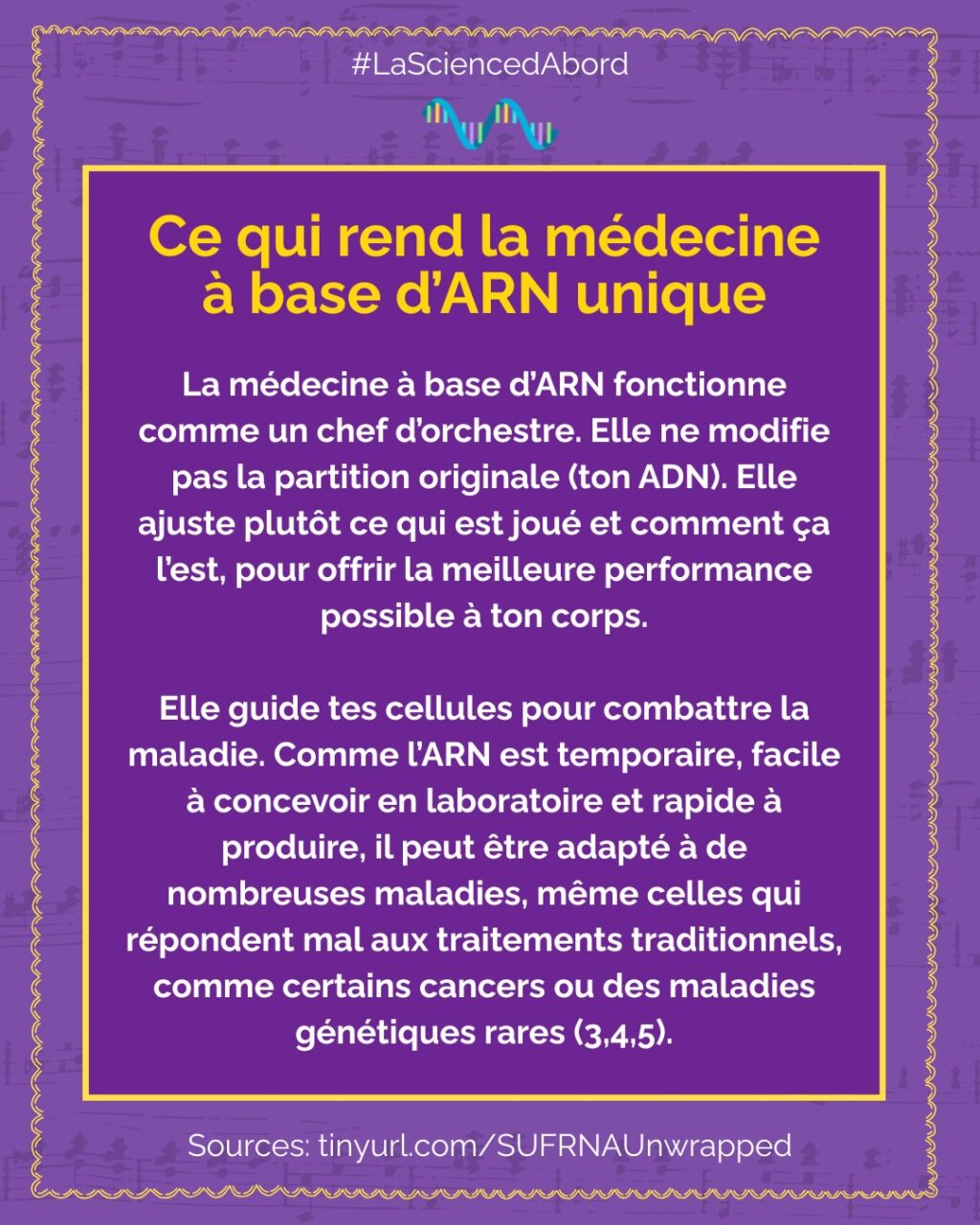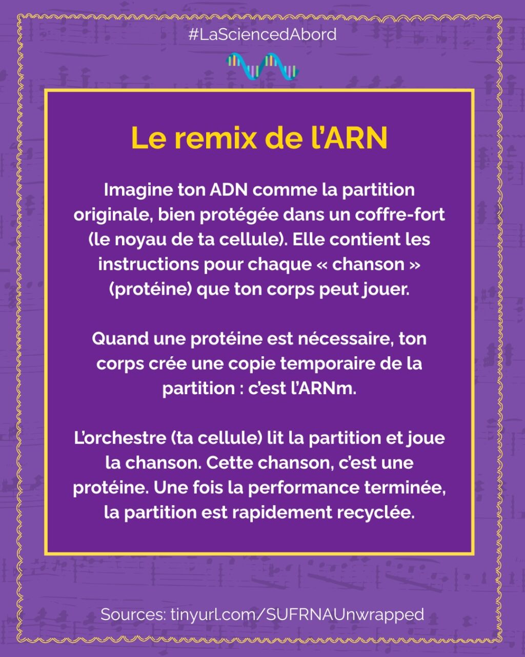Qu’est-ce que l’ARN messager? C’est une copie temporaire de l’information contenue dans notre ADN, utilisée par les cellules pour fabriquer des protéines.