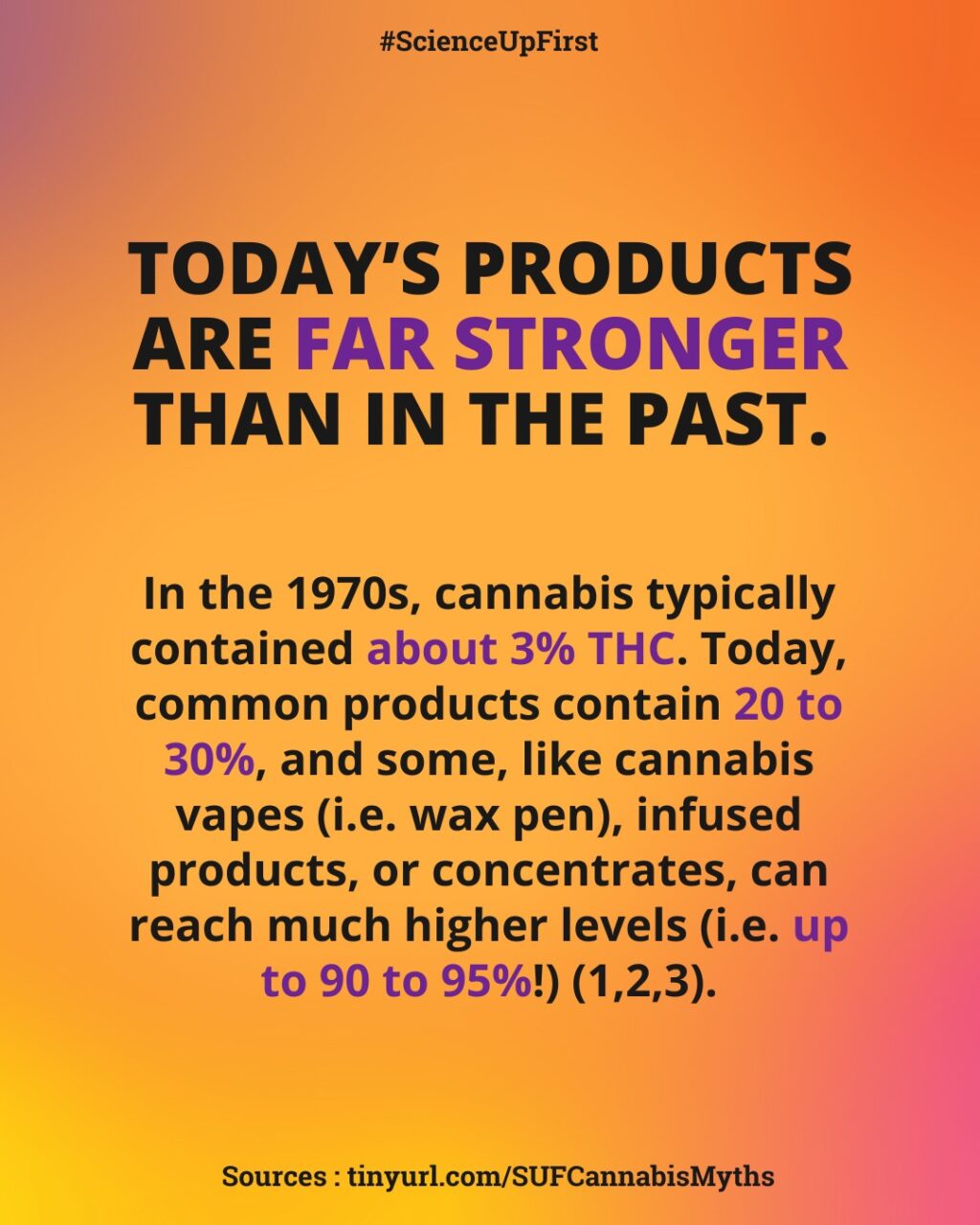 THC is the main compound that causes the “high.” With much higher levels today, the effects can hit harder and carry greater risks for substance addiction or psychosis (1,2).