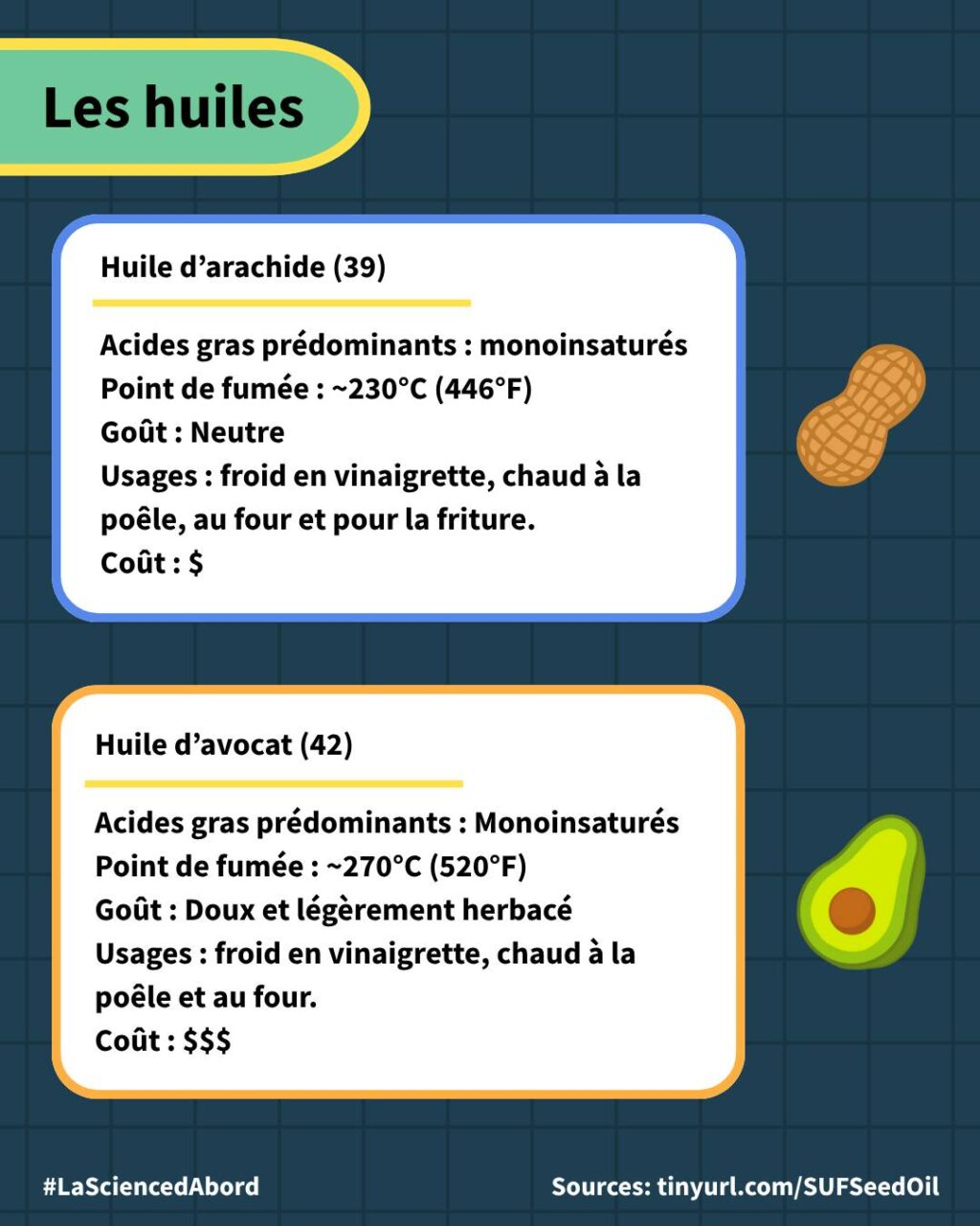 Tu t’es déjà senti·e un peu perdu devant le rayon des huiles à l’épicerie en te demandant laquelle utiliser pour cuisiner? 🫒 On s’est associé·es à la nutritionniste et diététiste @myriam_beaudry_ pour créer un guide rapide des huiles de cuisson populaires. 👇 scienceupfirst.com/nutrition-fr…