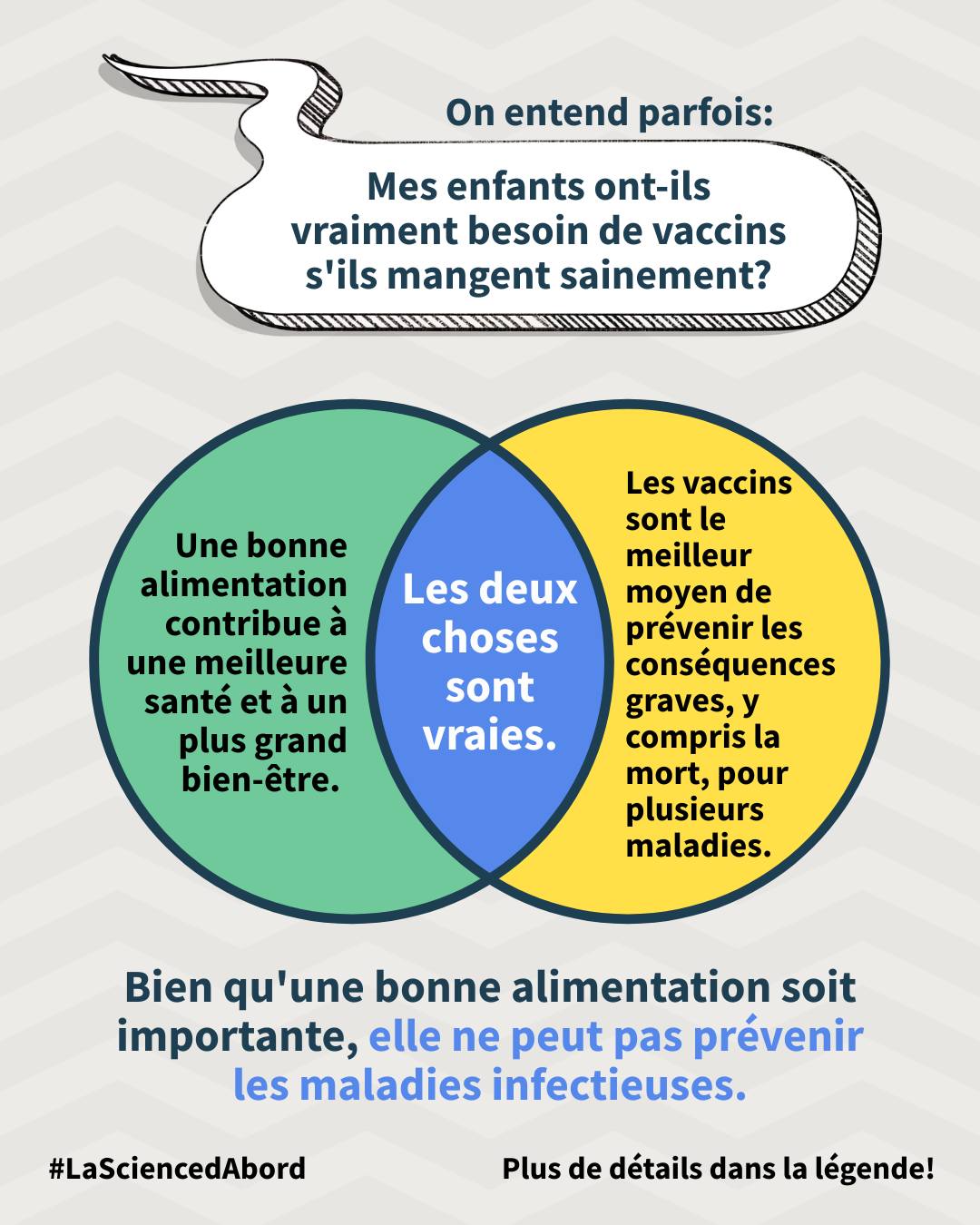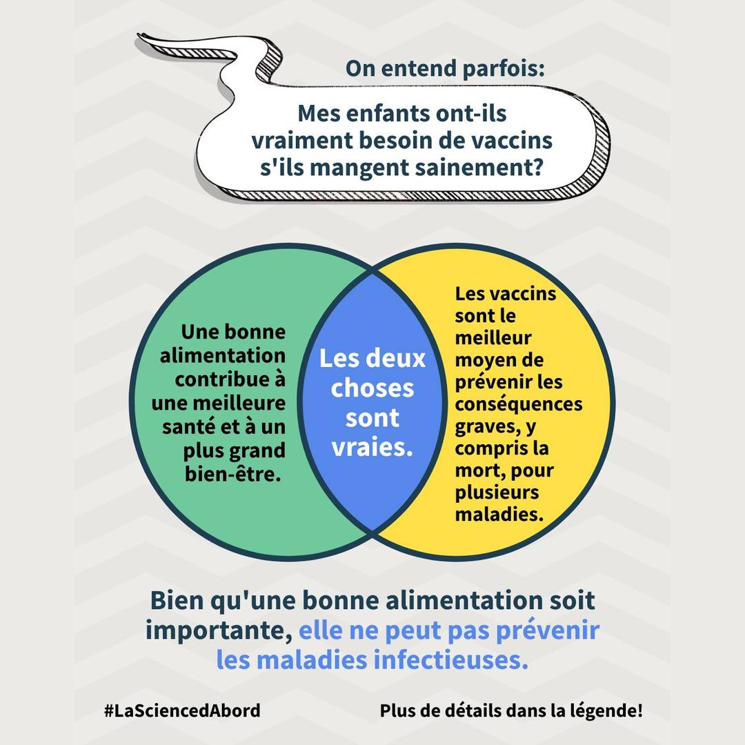 On est constamment exposé·es à du marketing qui promet de « booster » le système immunitaire grâce à des « super aliments » ou suppléments. C’est séduisant, mais ce n’est pas comme ça que ça fonctionne. Une activité immunitaire trop élevée peut même être nuisible. Une bonne alimentation et un bon sommeil aident à maintenir un système immunitaire en santé, notamment en permettant à ton corps de bien répondre aux vaccins (3,4). Les vaccins vont plus loin : les deux sont importants, mais jouent des rôles différents (3,6).