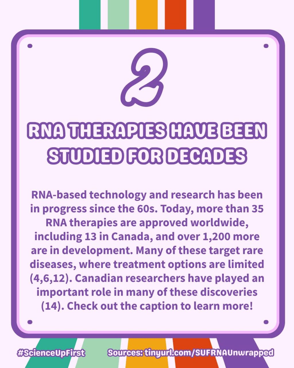 Today, RNA therapies are being explored for rare diseases, cancer, infectious diseases, and more.