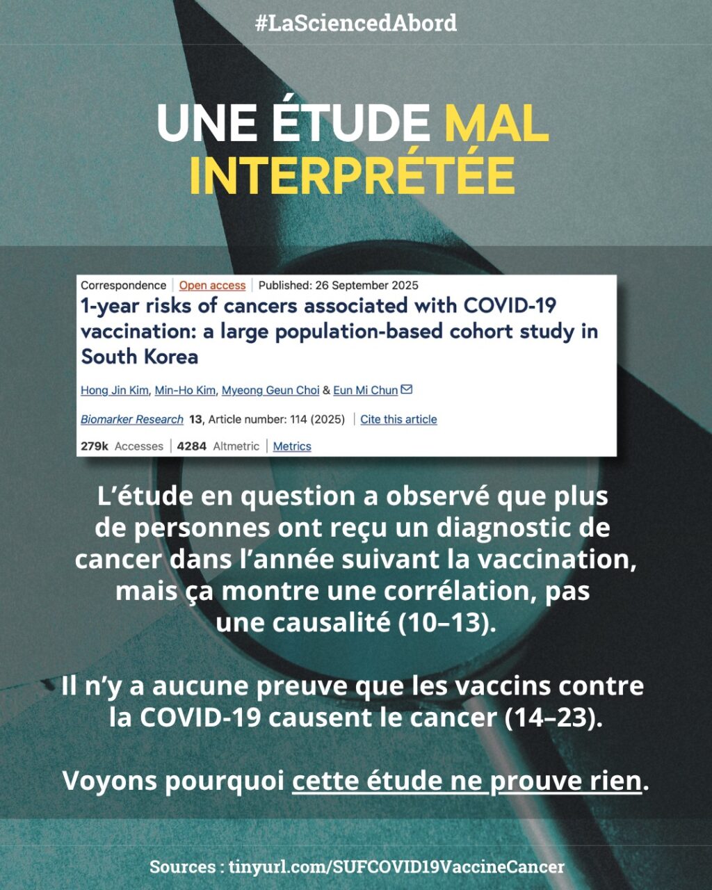 Le cancer met des années à se développer, et l’étude a simplement observé davantage de diagnostics après la vaccination, pas davantage de cas causés par les vaccins. D’autres recherches suggèrent même que la vaccination pourrait aider certains patients atteints de cancer à vivre plus longtemps.